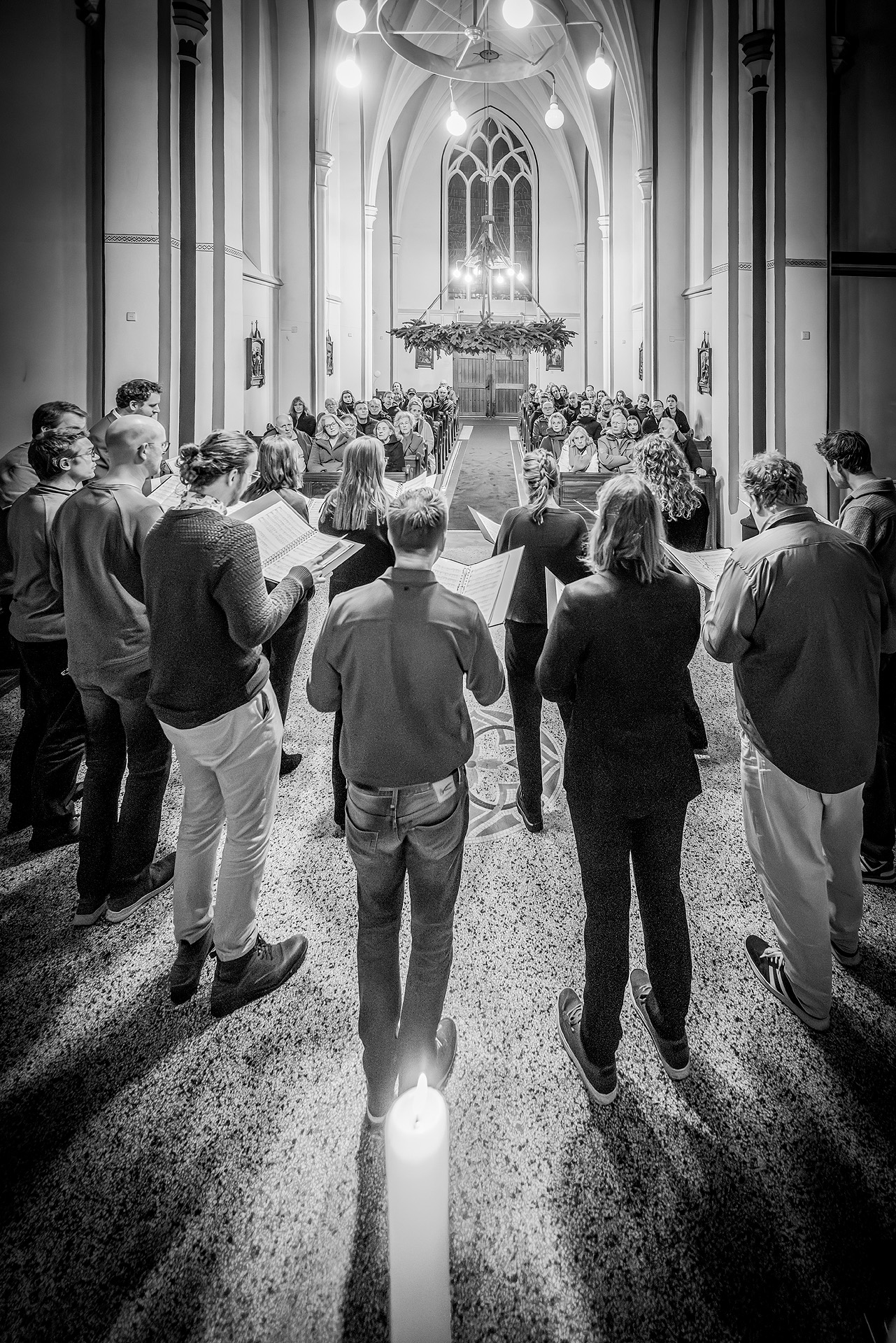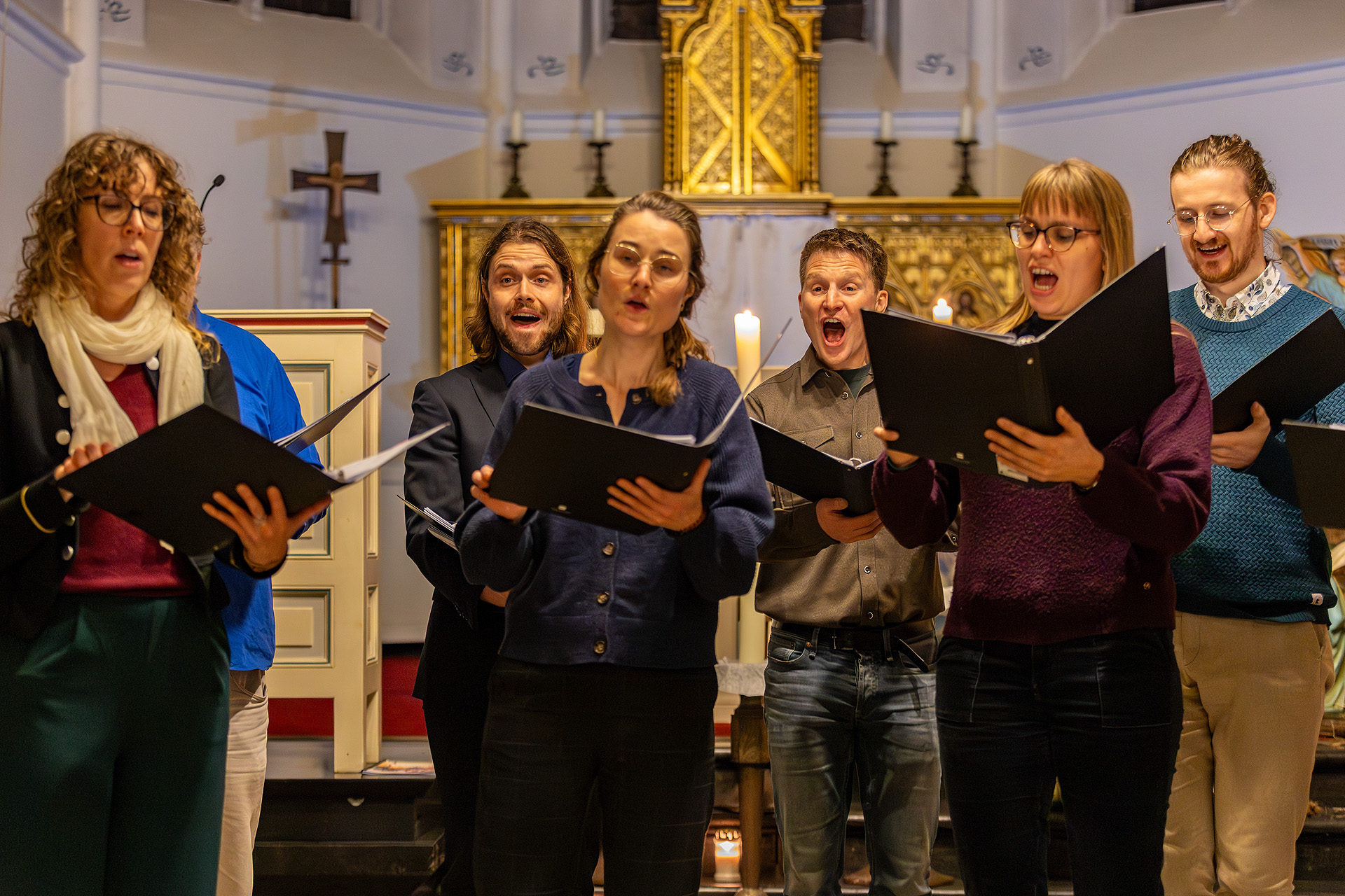 We hadden een stemmig a capella repertoire uitgekozen van een aantal vertaalde chansons uit ons vorige concertprogramma, een paar sfeervolle kerstliederen en wat repertoire van eerdere concerten, over leven, dood en liefde.